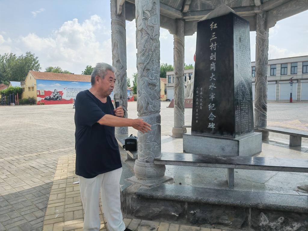 “1943年,日軍突襲劉崗村,嚴刑逼迫村民說出八路軍的秘密。眼看村民一個個被殺,冀魯豫邊區八路軍戰士秦興體站了出來,向侵略者高聲反抗,義無反顧獻出了生命……”在菏澤市曹縣韓集鎮劉崗村,74歲的義務講解員劉全義站在劉崗大水牢紀念碑前,動情講述著“紅三村”的抗日故事。