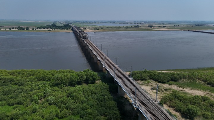 這是6月25日拍攝的泰來縣境內橫跨嫩江的平齊鐵路嫩江橋。新華社記者 張啟明 攝