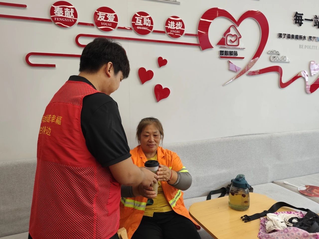 江漢區總工會打造的“清涼空間”已在區域性職工之家愛心驛站投入使用。驛站內空調全天運行,飲水機、按摩椅等設施一應俱全,礦泉水、酸梅湯、綠豆湯等防暑飲品按需供應。快遞員、交通協管員、環衛工人們在忙碌間隙,推門就能歇腳補水、放松身心,驛站用實實在在的服務,讓戶外勞動者在高溫天里有了歇腳的港灣。