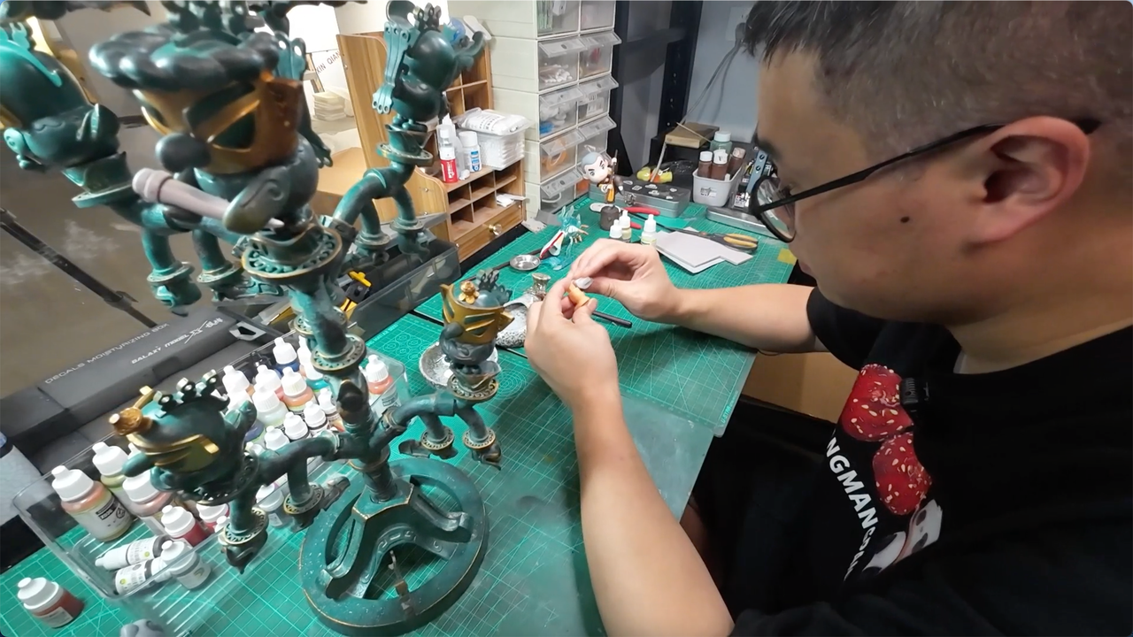 作為一名站在行業(yè)浪潮上的后起之秀,曾舟從事這個“新職業(yè)”已有7年時間,在此之前,他一直做著游戲原畫師的工作。除了石犀系列作品,他還設計制作了“福佑堆堆”“通天神樹?十日神話”等三星堆系列文創(chuàng)盲盒。