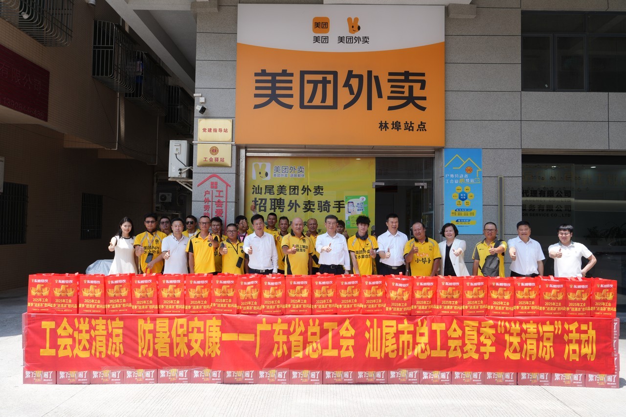 7月15日、17日,廣東省總工會在廣州白云機場、廣州火車站、汕尾美團外賣林埠站點開展“送清涼”活動,慰問高溫下堅守崗位的一線交通運輸職工與新就業形態勞動者。
