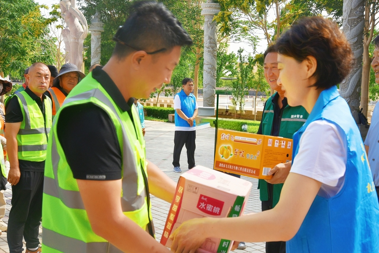 敦煌市總工會精心組織,常態化開展“環衛工人愛心餐日”公益活動,食堂精心準備了特色漿水面,并送上貼心的“三伏清涼”,讓“娘家人”的溫暖直抵心間。在工會驛站的“夏日送清涼”主題活動中,提前熬制的綠豆湯清香四溢,鮮切西瓜清甜爽口,為外賣騎手、出租車司機、貨車司機、環衛工人等一線戶外勞動者驅散暑氣。