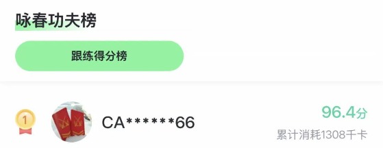 吉林省通化市柳河縣郵政分公司寄遞部負責人隋忠陽,以96.4分的成績暫列詠春功夫榜跟練得分榜第一,跟練動作標準度接近滿分!