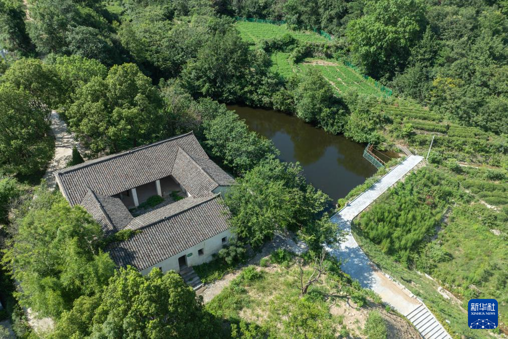 這是位于湖北省孝感市大悟縣白果樹灣村的新四軍第五師國際招待所(無人機照片,7月21日攝)。新華社記者 杜子璇 攝