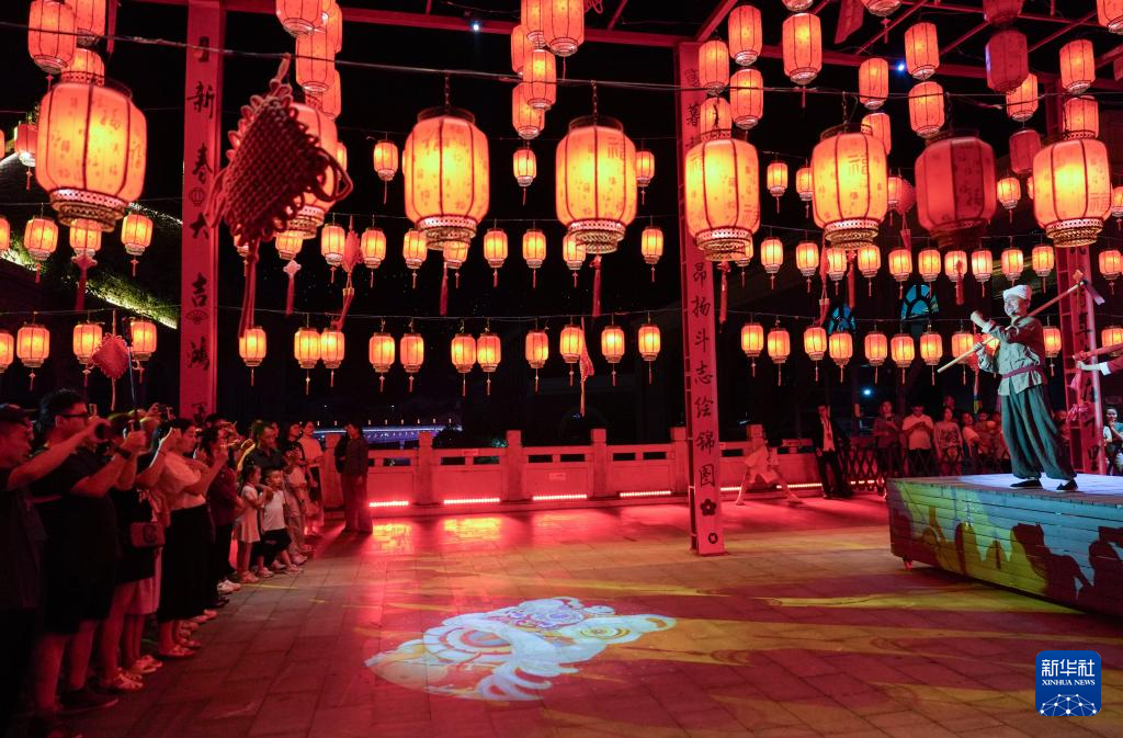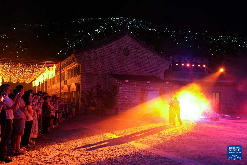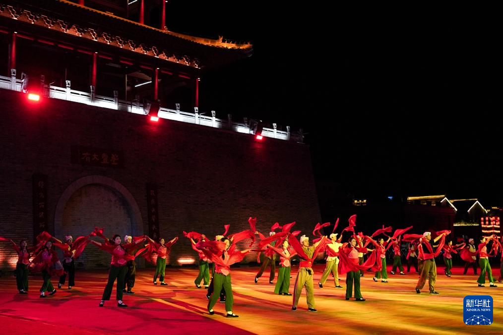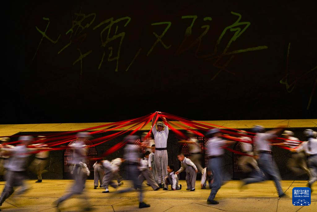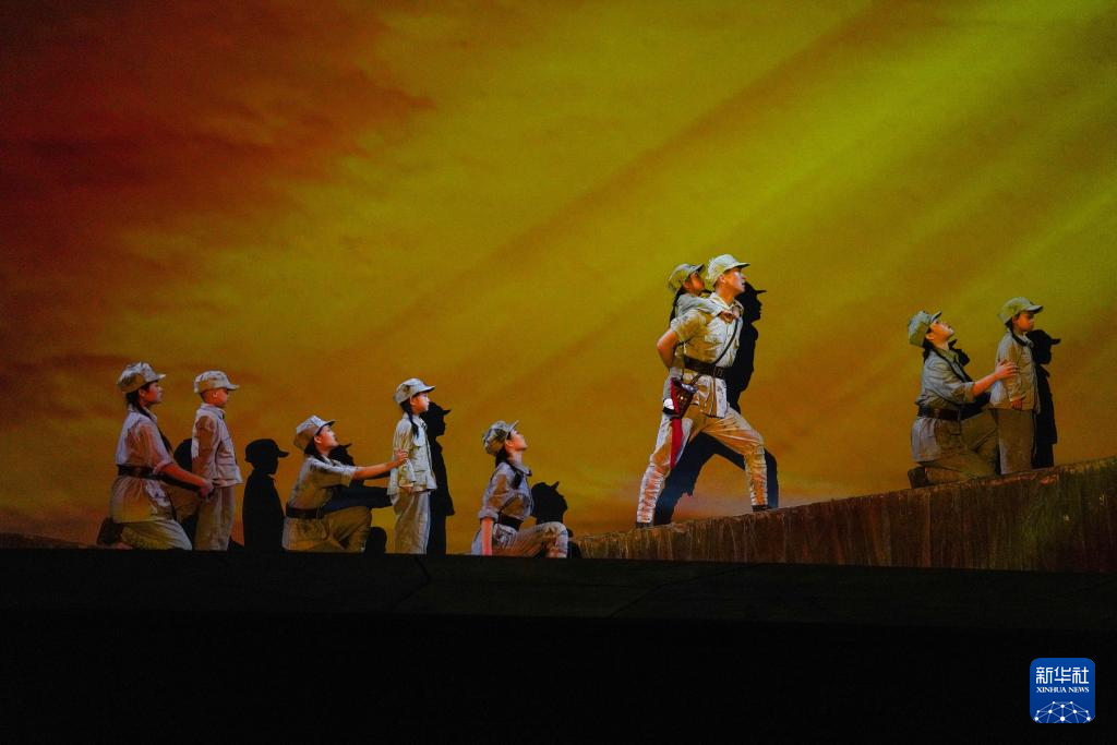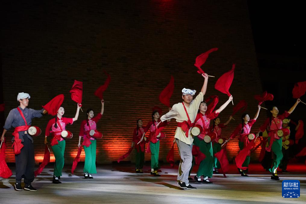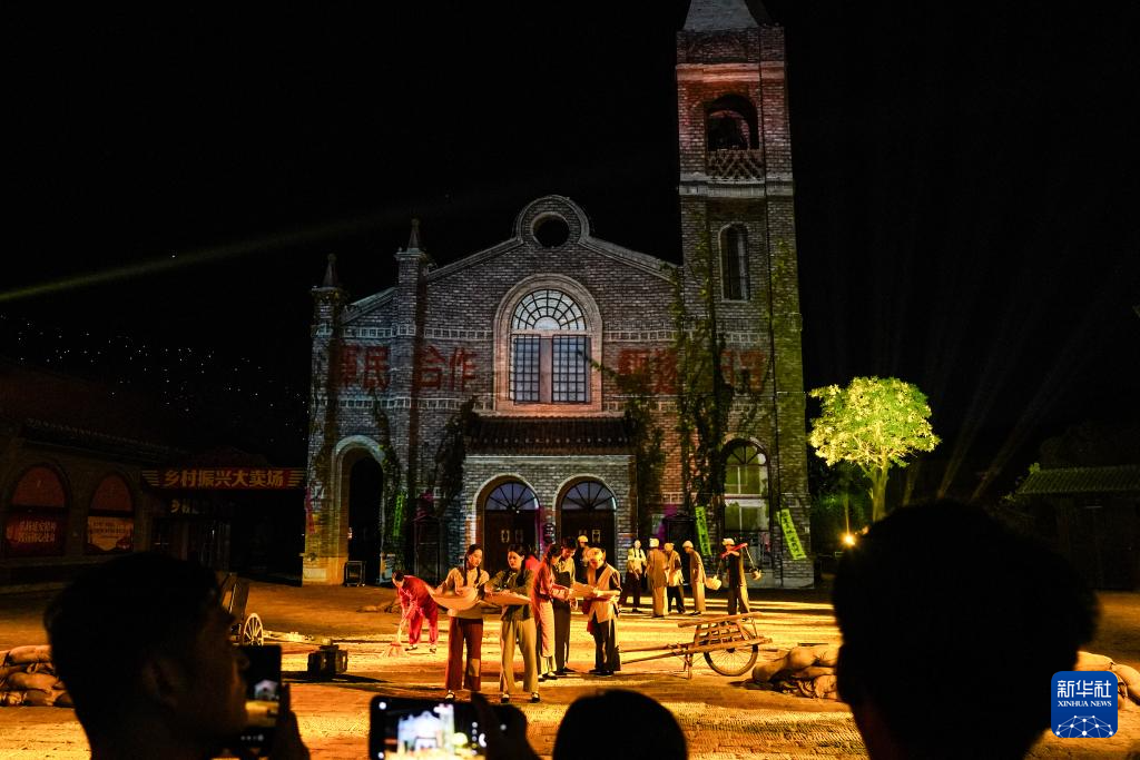7月29日,演員在陜西延安的金延安文化旅游產(chǎn)業(yè)園區(qū)表演紅色歌舞劇《延安十三年》。新華社記者 樊雨晴 攝