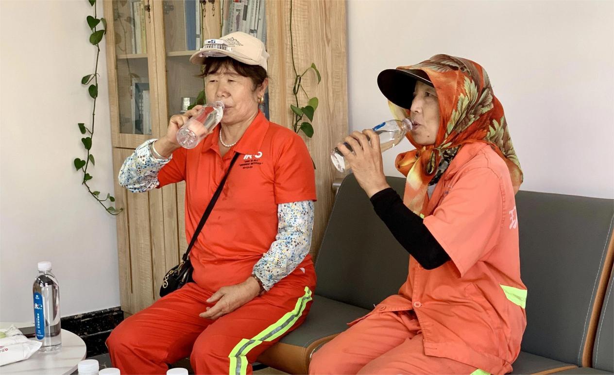 “以前累了就在樹底下或道邊坐會(huì)兒,現(xiàn)在有了休息室,進(jìn)屋啥都有,能喝水,能吹空調(diào),太暖心了。”王燕秋說。