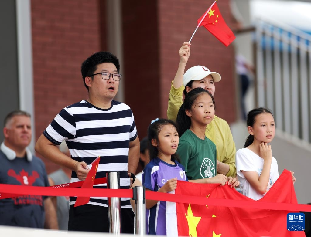 8月9日,現場觀眾為中國隊加油助威。新華社記者 陳斌 攝