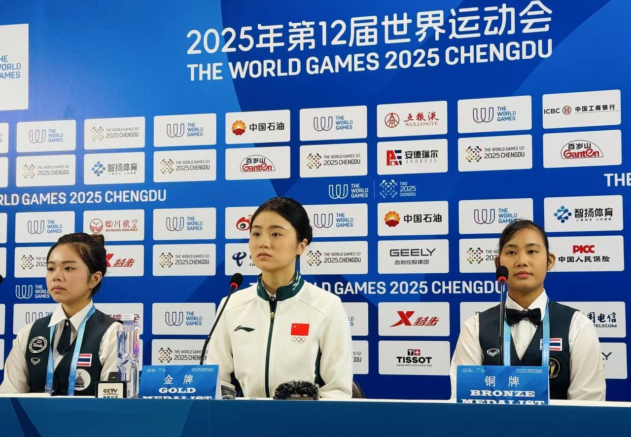 工人日報客戶端8月13日成都電(記者李元浩 李娜 劉兵 莫蕎菲 通訊員潘文苑)今天中午,成都世運會臺球項目決出第一枚金牌。在女子斯諾克6紅球項目決賽中,中國選手白雨露以大比分2比0擊敗泰國選手那魯差,摘得冠軍。另一名泰國選手博雷沖布摘得季軍。