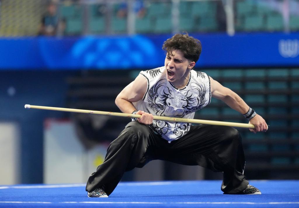 8月8日,伊朗選手沙欣在南棍比賽中。新華社記者 徐速繪 攝