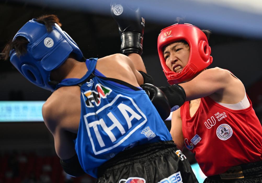 8月10日,在2025年成都世運會女子48公斤級泰拳決賽中,中國選手劉曉慧戰(zhàn)勝泰國選手奧諾克奪冠。新華社記者 張博文 攝
