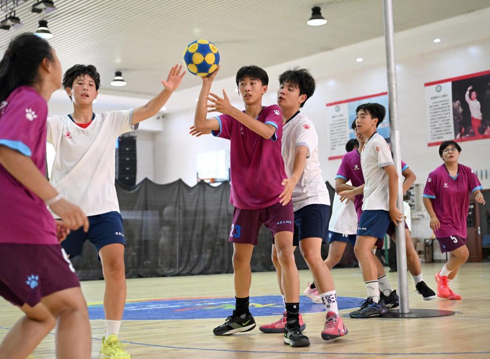 鄭州市第七十六中學荷球隊球員在練習賽中。新華社記者 李嘉南 攝