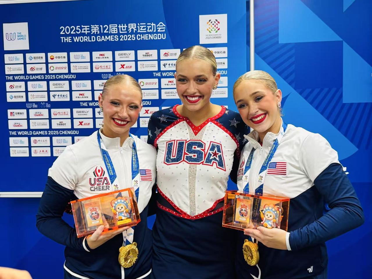 工人日報客戶端8月16日成都電(記者李元浩 李娜 劉兵 莫蕎菲 通訊員潘文苑)今天下午,成都世界運動會啦啦操雙人花球決賽在東安湖體育公園多功能體育館舉行,這也是該項目首次亮相世運會。最終,實力強大的美國組合艾利遜/悉尼以89.860的高分摘得金牌。厄瓜多爾隊和澳大利亞隊分別獲得亞、季軍。中國隊兩對組合分別獲得第六名和第八名的成績。