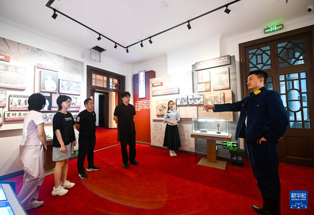 講解員帶領(lǐng)觀眾在吉鴻昌舊居參觀(8月16日攝)。新華社記者 趙子碩 攝