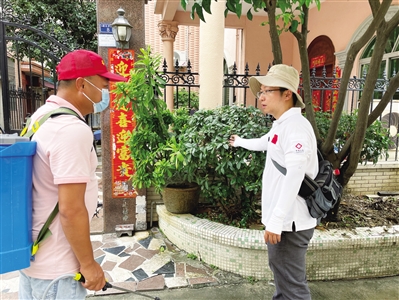 無法覆蓋的空置房屋、背街里巷、衛生死角怎么處置?消殺力量不足如何解決?家庭和個人防護不到位怎么辦?對此,梁永堅總結出一套工作方法:7~10時、16~19時是蚊子活躍時段,也是滅蚊最佳時機,此時他組織由公職人員、志愿者、第三方公司組成的隊伍,深入各村居滅蚊,其余時段則入戶清理積水、開展健康宣教。