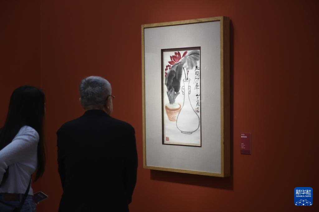 8月25日,觀眾在中國美術館觀看齊白石創作的《和平萬年》。新華社記者 魯鵬 攝