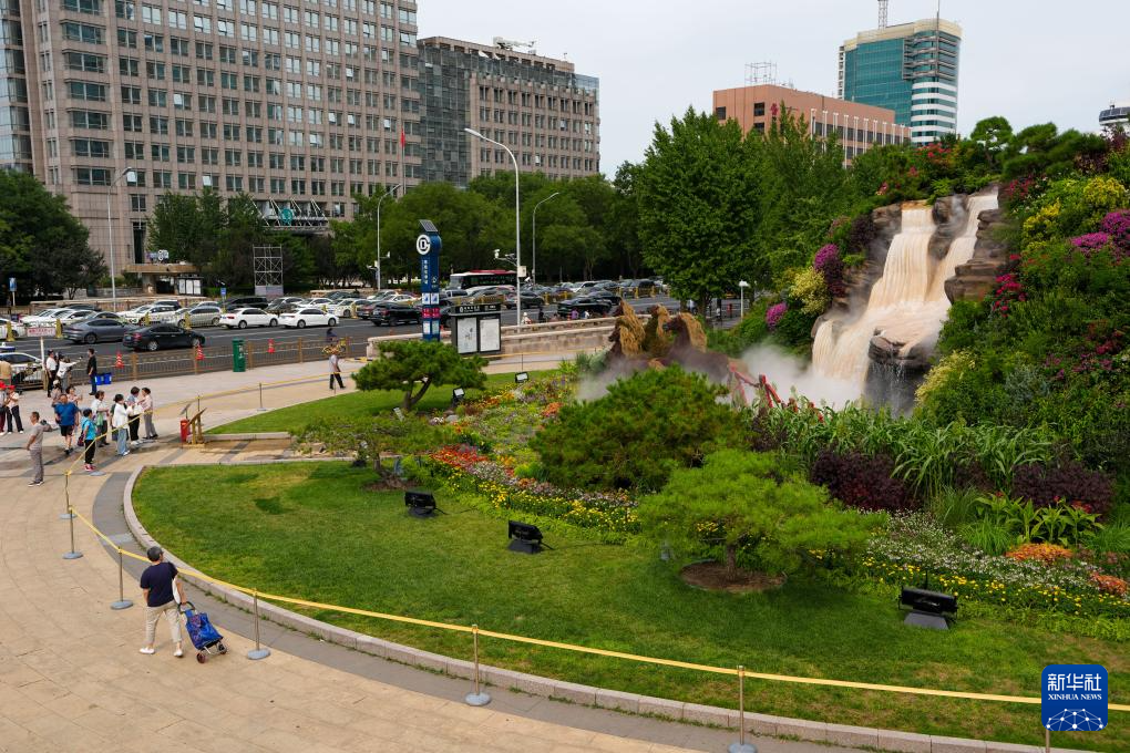 8月26日,人們在北京復興門參觀“美好明天”花壇。新華社記者 謝晗 攝