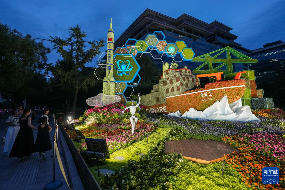 據北京市園林綠化局介紹,紀念活動期間,在長安街沿線以“銘記歷史、緬懷先烈、珍愛和平、開創未來”為主題,從建國門至復興門布置10組立體花壇,生動展現80年來,偉大的中國人民前仆后繼、不屈不撓、頑強奮斗,為實現強國建設、民族復興偉業而不懈努力的偉大精神。
