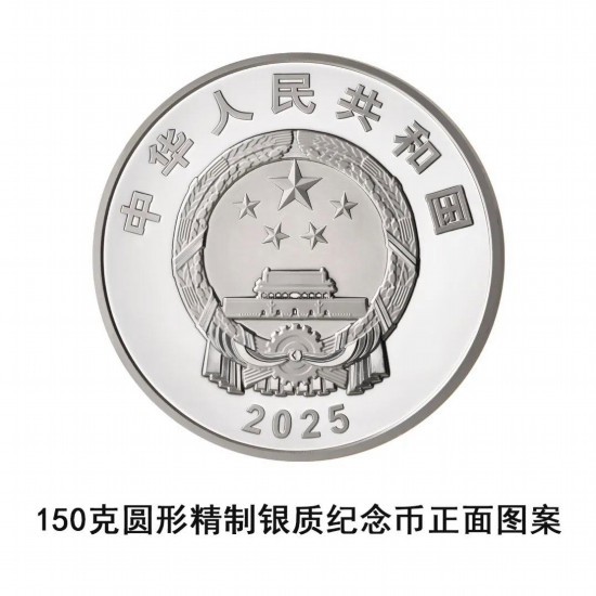 150克圓形銀質(zhì)紀(jì)念幣為精制幣,含純銀150克,直徑70毫米,面額50元,成色99.9%,最大發(fā)行量5000枚。