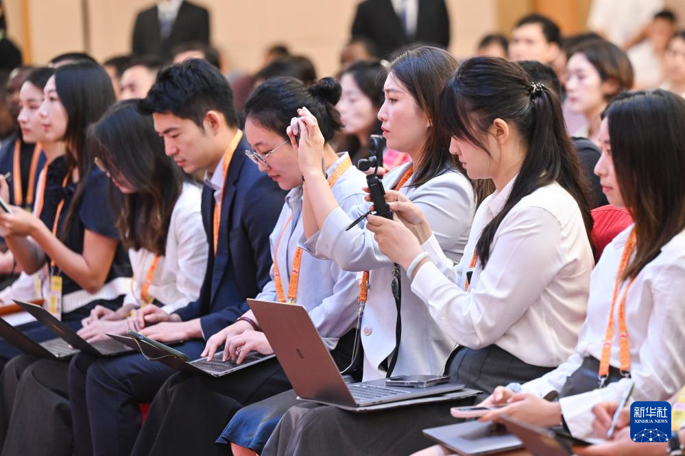 8月29日上午,中國人民抗日戰(zhàn)爭暨世界反法西斯戰(zhàn)爭勝利80周年紀念活動新聞中心舉辦第二場記者招待會,外交部副部長馬朝旭介紹堅持和平發(fā)展、推動構(gòu)建人類命運共同體有關(guān)情況,并回答記者提問。這是記者在現(xiàn)場工作。新華社記者 金良快 攝