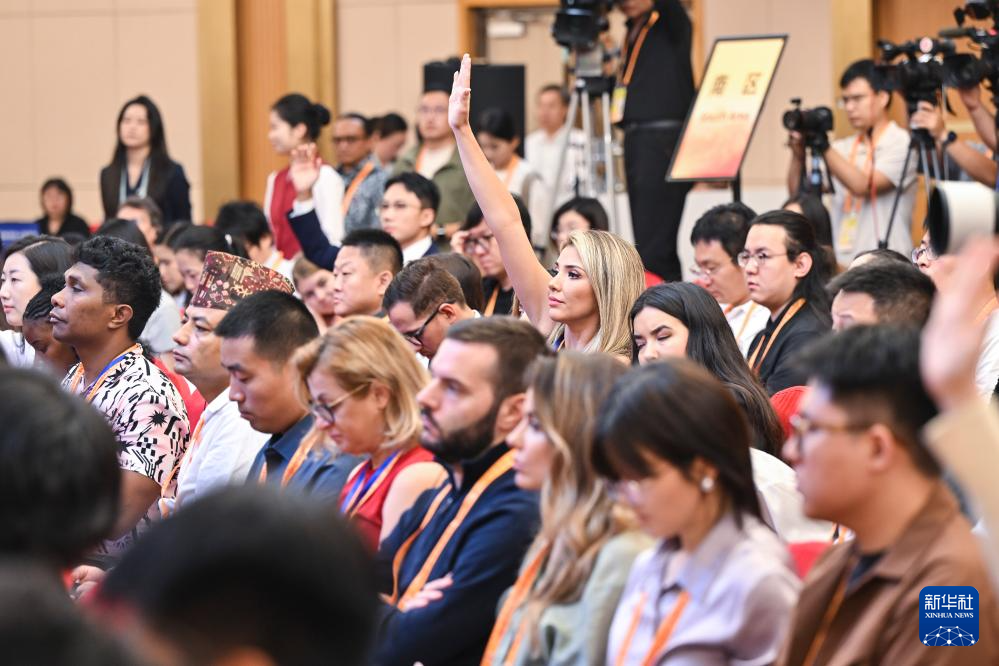8月29日上午,中國人民抗日戰(zhàn)爭暨世界反法西斯戰(zhàn)爭勝利80周年紀念活動新聞中心舉辦第二場記者招待會,外交部副部長馬朝旭介紹堅持和平發(fā)展、推動構(gòu)建人類命運共同體有關(guān)情況,并回答記者提問。這是記者在現(xiàn)場舉手提問。新華社記者 金良快 攝