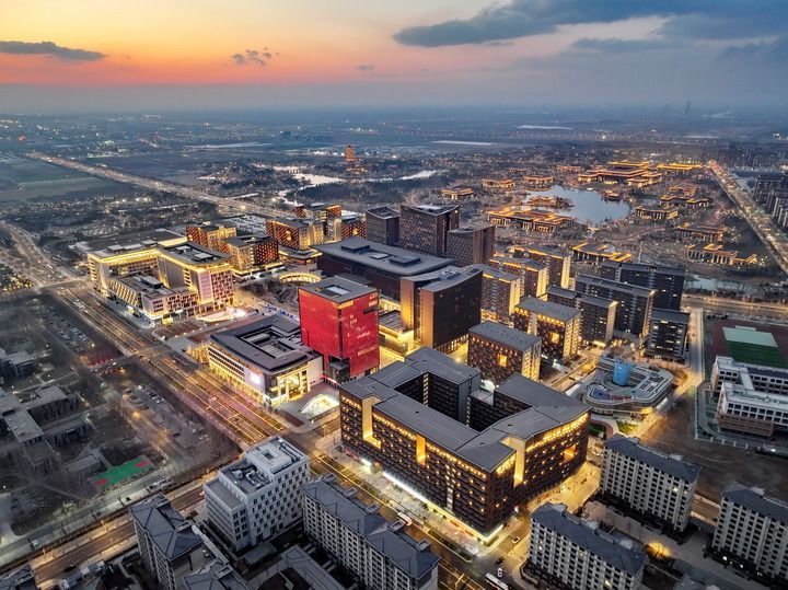 雄安商務服務中心夜景(2025年3月15日攝,無人機照片)。新華社記者 牟宇 攝