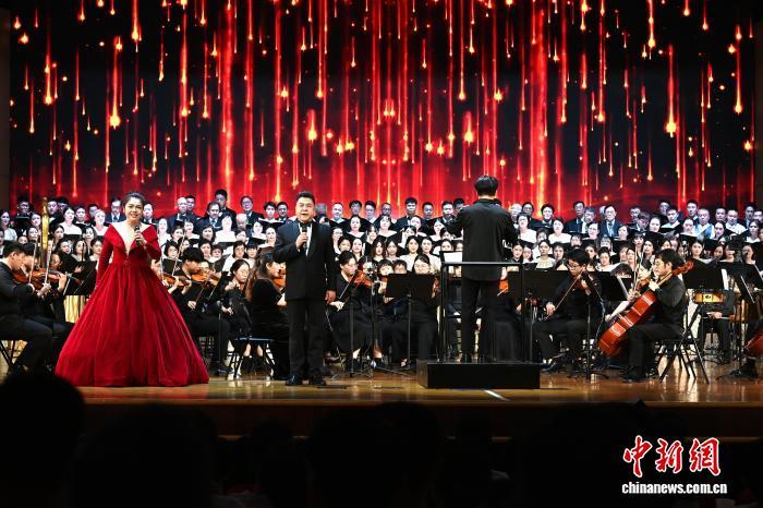 全場齊聲高唱《歌唱祖國》,雄壯的歌聲響徹劇場,將氣氛推向最高潮。中新網記者 張金川 攝