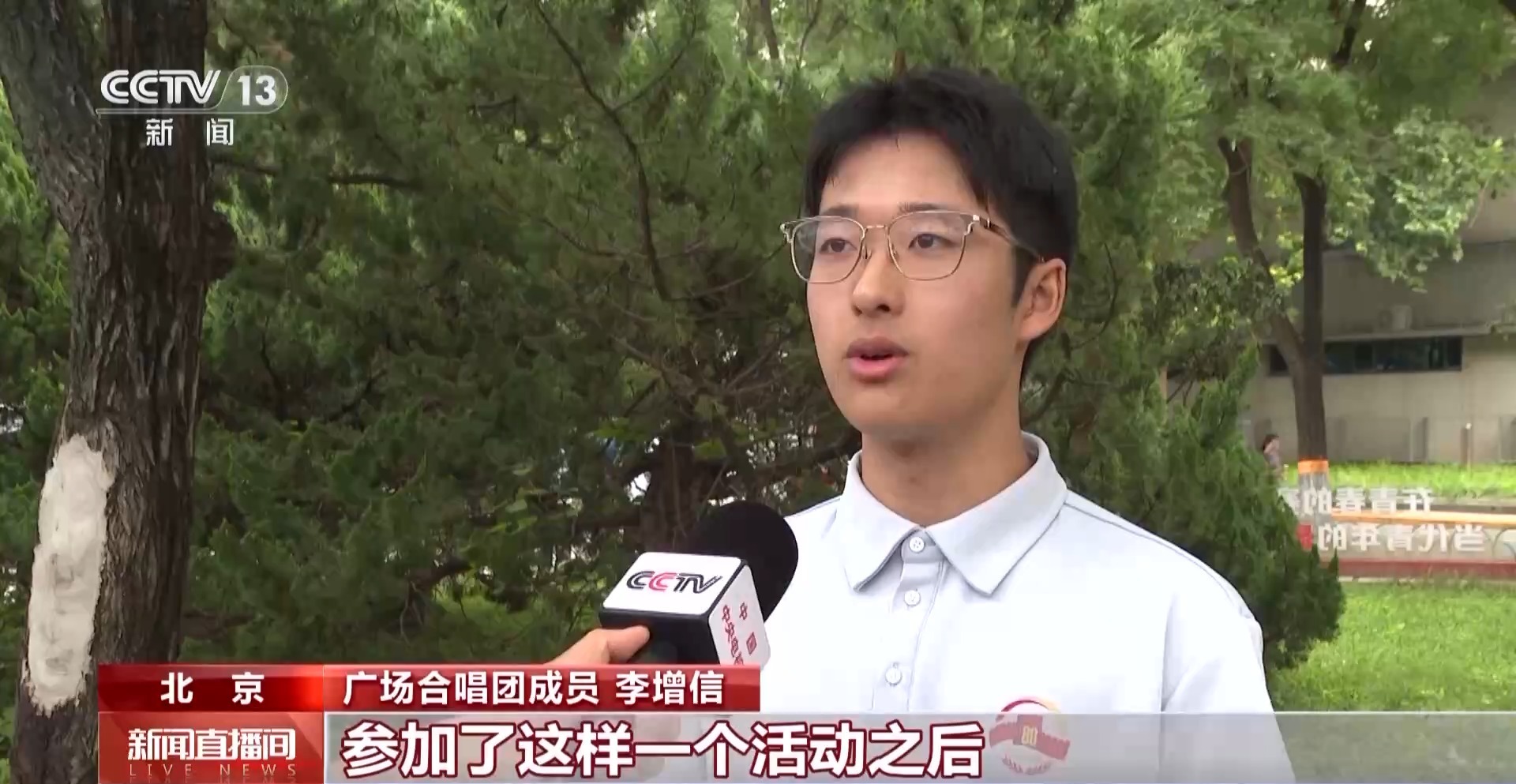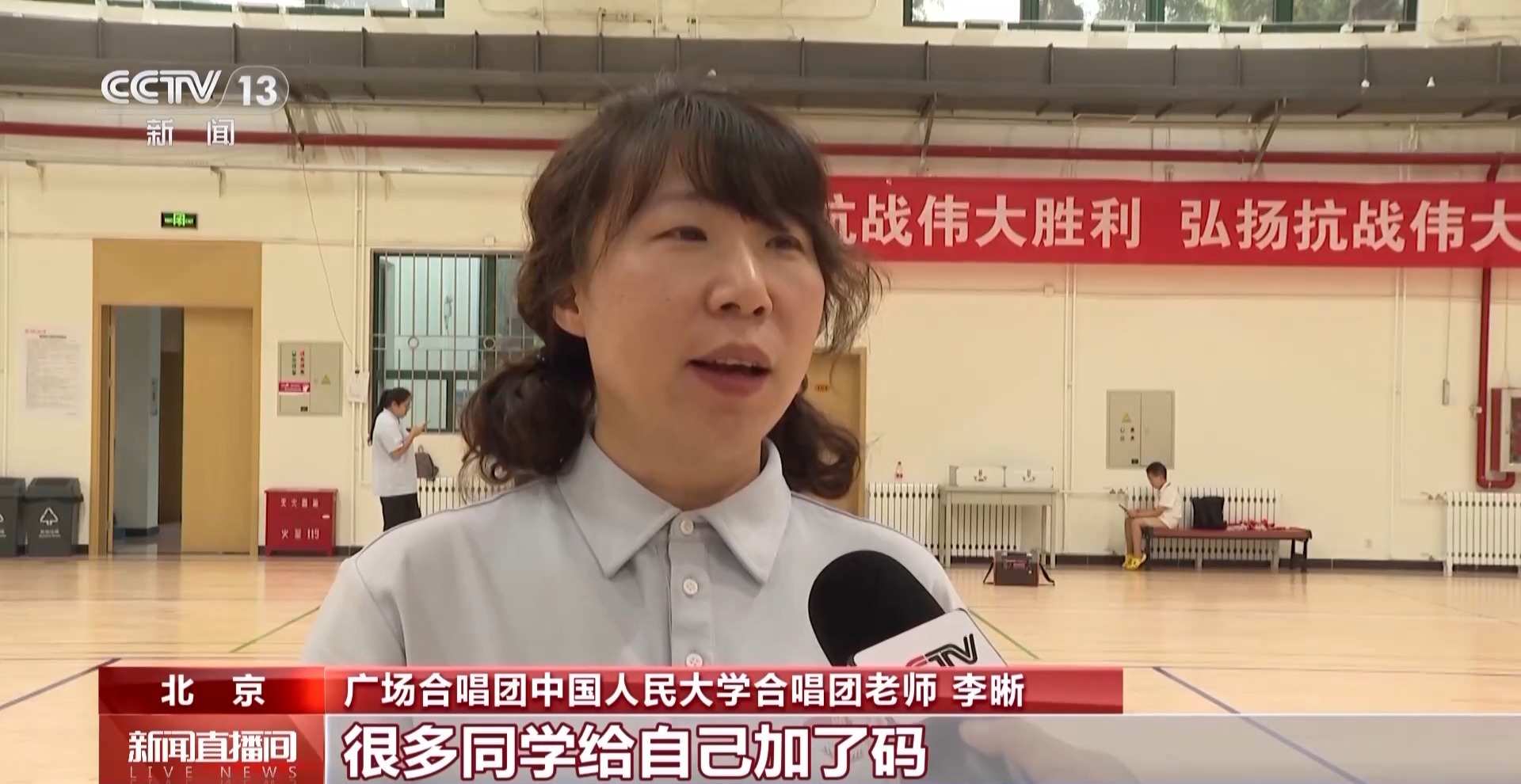 廣場合唱團中國人民大學合唱團老師 李晰:很多同學給自己加了碼,體力不太好的同學主動地到操場上去跑步,從剛開始看到他們只能跑一圈,后來能跑五圈。在這個過程中,自身得到了鍛煉,更重要的是他們內心的成長。