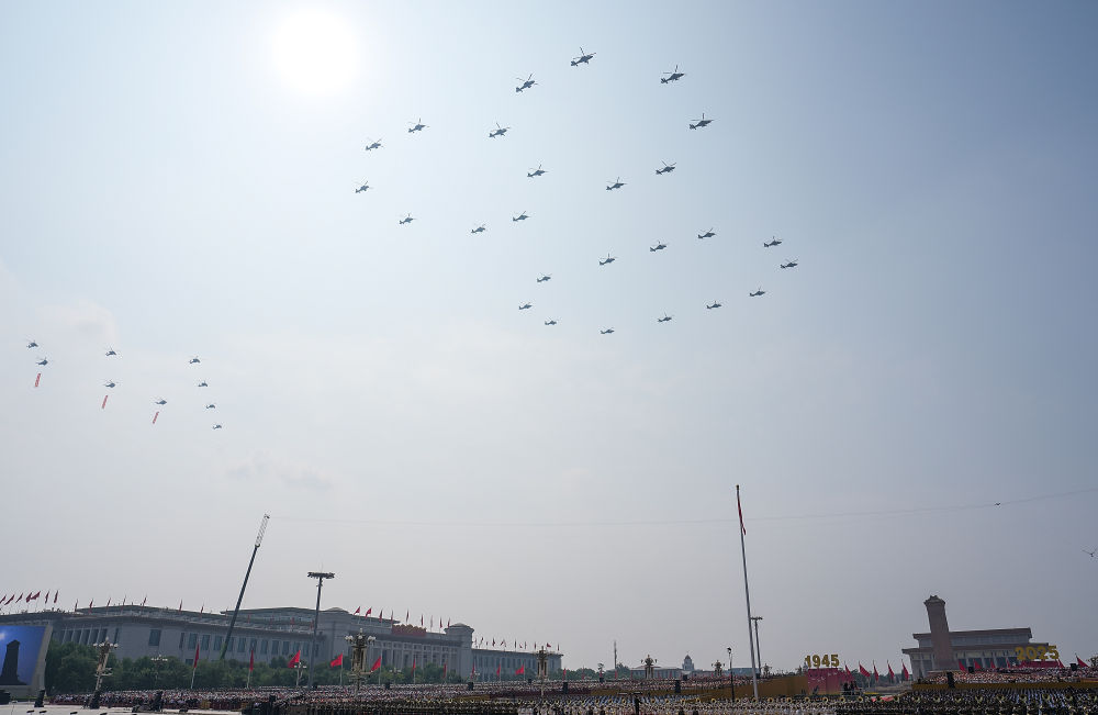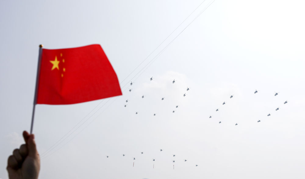 這是空中護旗梯隊飛過北京上空