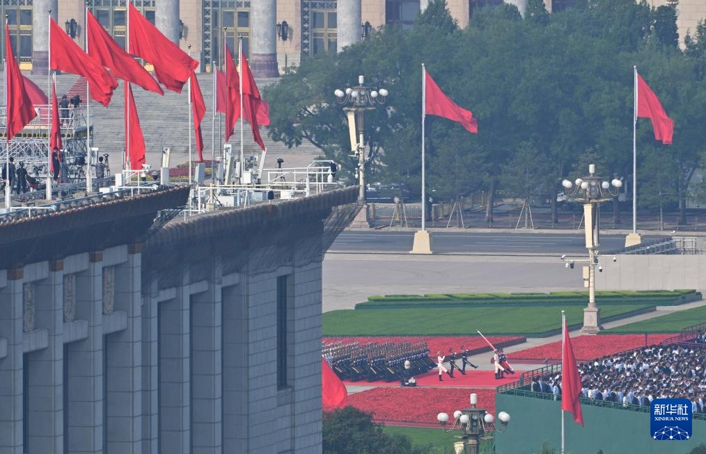 9月3日,紀(jì)念中國人民抗日戰(zhàn)爭暨世界反法西斯戰(zhàn)爭勝利80周年大會在北京隆重舉行。這是國旗護衛(wèi)隊官兵護衛(wèi)著五星紅旗行進。