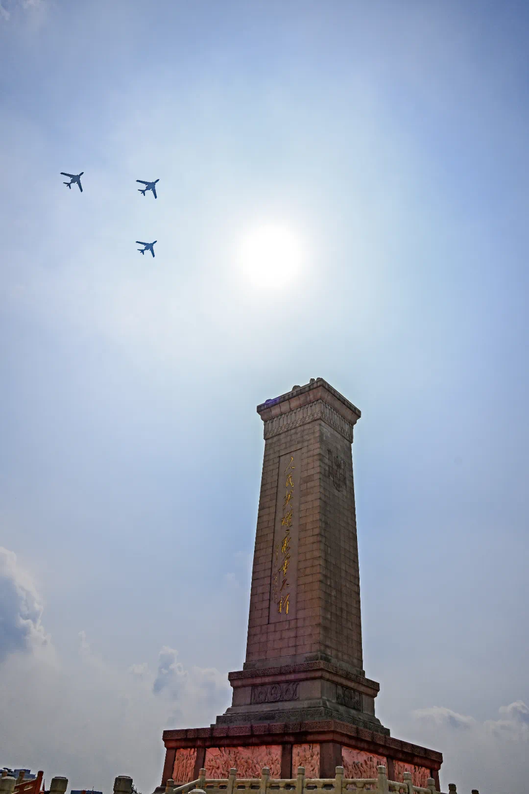 9月3日,紀念中國人民抗日戰爭暨世界反法西斯戰爭勝利80周年大會在北京隆重舉行。這是加受油機梯隊通過天安門廣場。新華社記者 孟濤 攝