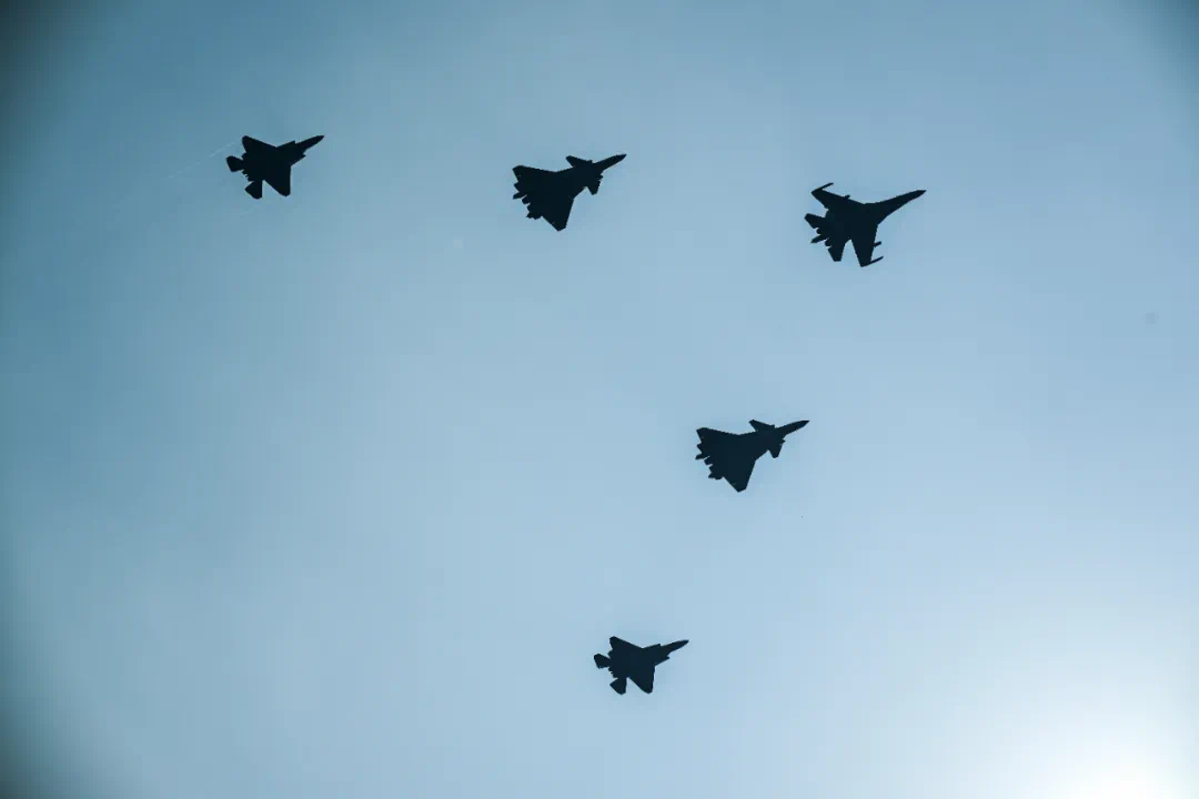 9月3日,紀念中國人民抗日戰爭暨世界反法西斯戰爭勝利80周年大會在北京隆重舉行。這是殲擊機梯隊接受檢閱。新華社記者 張宏祥 攝