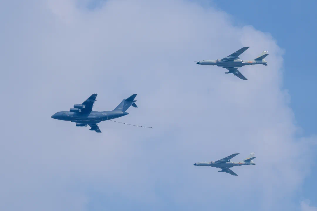 9月3日,紀念中國人民抗日戰爭暨世界反法西斯戰爭勝利80周年大會在北京隆重舉行。這是加受油機梯隊接受檢閱。新華社記者 孫凡越 攝