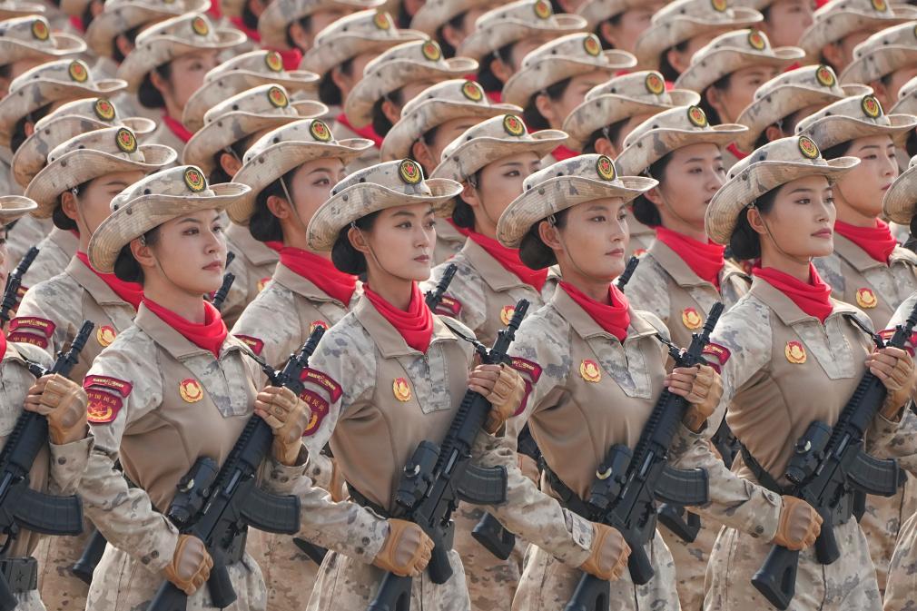 民兵方隊全部由女民兵組成。這是民兵首次亮相以紀念抗戰勝利為主題的閱兵活動。