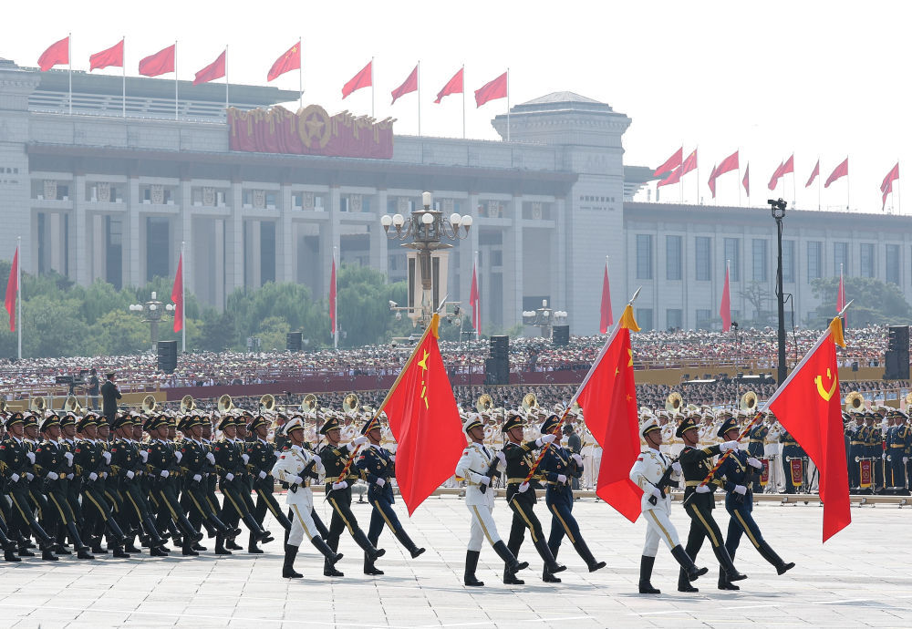 2025年9月3日,紀念中國人民抗日戰爭暨世界反法西斯戰爭勝利80周年大會在北京隆重舉行。這是戰旗方隊接受檢閱。新華社記者 王建華 攝