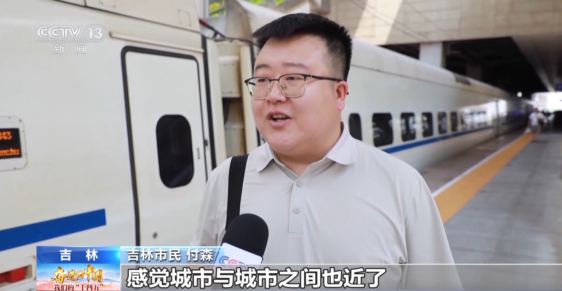 吉林市民 付森:從吉林到長春,坐高鐵只需要40分鐘,感覺城市與城市之間也近了,人與人之間也近了。