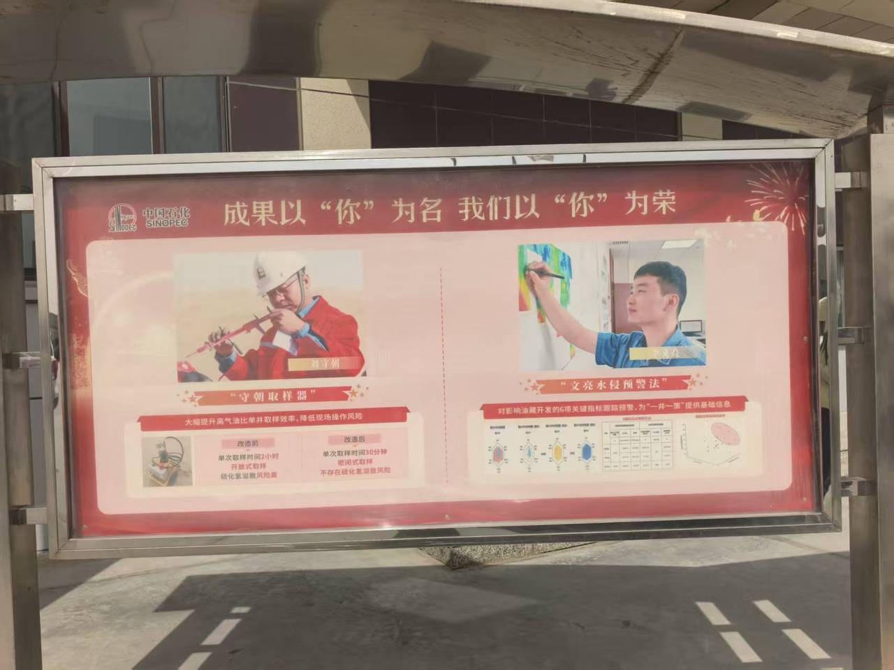 9月14日,記者走進位于塔克拉瑪干沙漠腹地的中國石化西北油田采油四廠,看見宣傳櫥窗里有4位員工的工作照片非常醒目,標題為“成果以‘你’為名 我們以‘你’為榮”,文字內容是介紹以4位員工名字命名的技術成果:劉守朝的“守朝取樣器”、李文亮的“文亮水侵預警法”、魏鵬飛的“鵬飛套管整形法”和楊彥冬的“彥冬晃電治理法”。