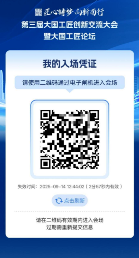 信息授權后,系統將生成個人專屬入場二維碼,該二維碼作為大會入場憑證(具有時效性)。入場時請出示二維碼,經現場掃描核驗無誤后即可進入會場。