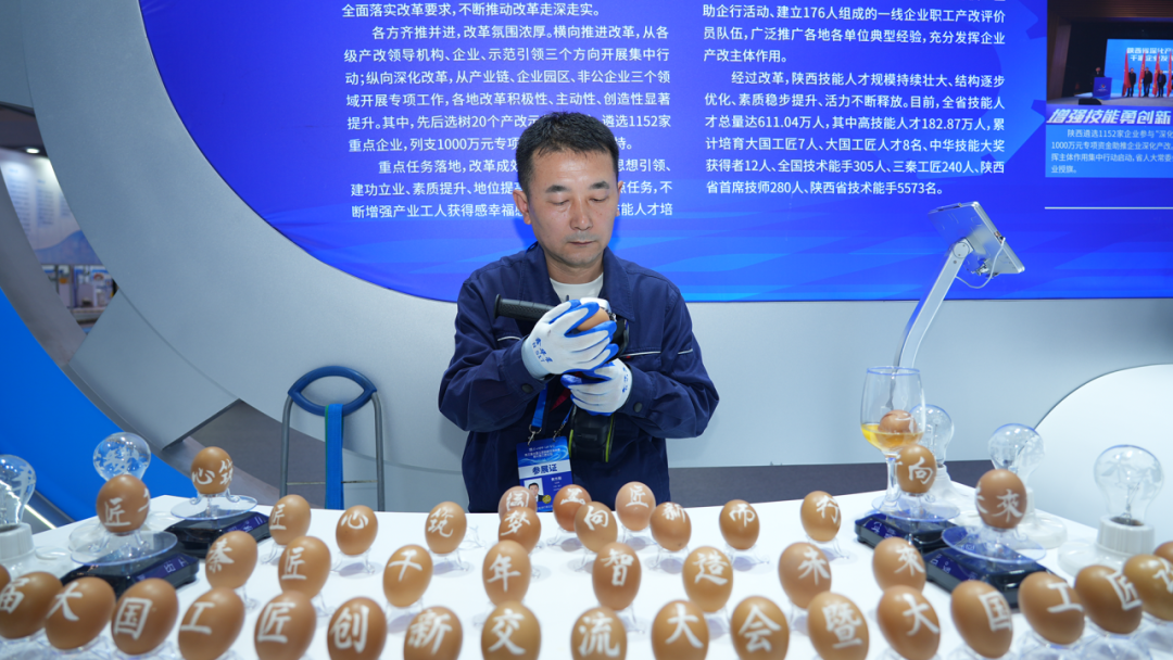 工匠在雞蛋殼上刻字