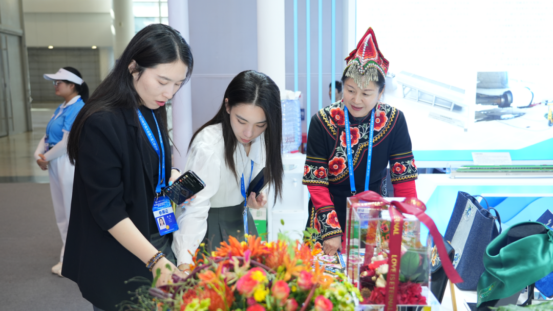觀眾參觀彝族刺繡文創產品