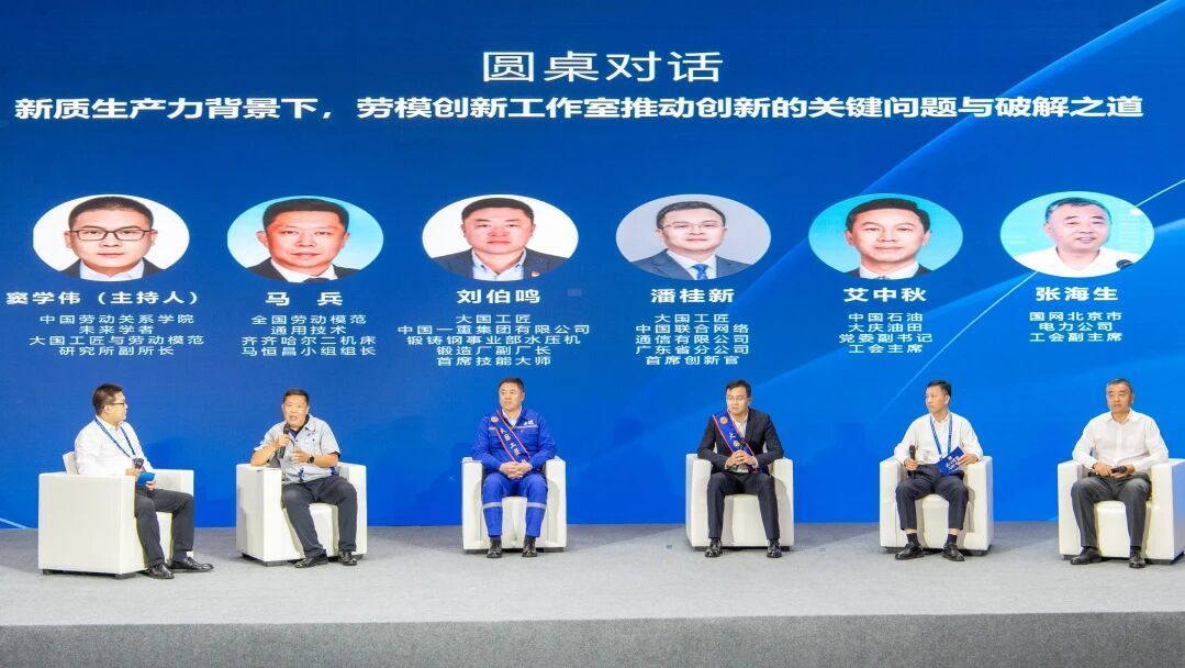圓桌對話環節,馬兵、劉伯鳴、潘桂新、艾中秋、張海生等五位來自企業一線和工會系統的代表,圍繞勞模創新工作室推動創新的關鍵問題與破解之道展開深度交流,分享實踐經驗、碰撞思想火花,從“組織基礎”到“核心要素”,從“技術融合”到“保障機制”,從“普遍問題”到“場景落地”,層層遞進拆解創新工作室發展難題,為創新工作室發展共商新答案。
