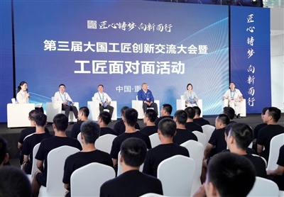 9月24日,大國(guó)工匠張雪松(右一)參加“工匠面對(duì)面”活動(dòng)分享匠心感悟。