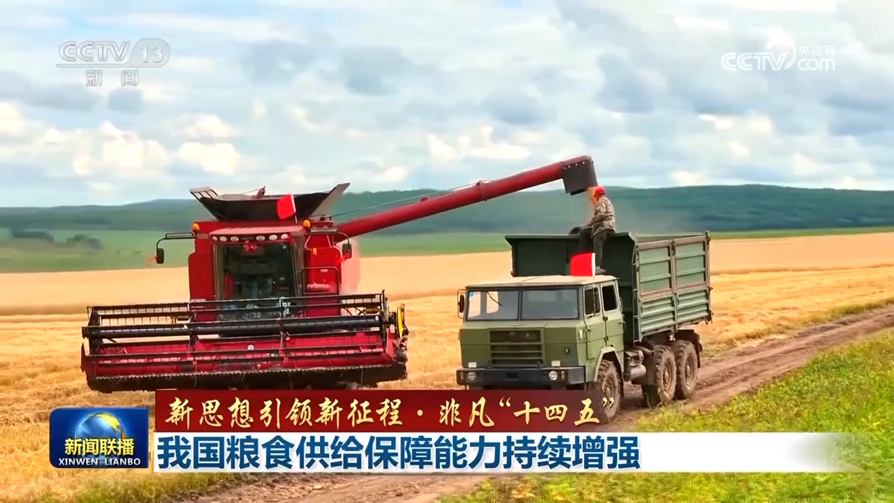 “十四五”期間,從物質基礎到機制保障,我國全方位夯實糧食安全根基,糧食年產量穩定在1.3萬億斤以上,2024年首次邁上1.4萬億斤新臺階,14億多中國人的飯碗端得更牢。