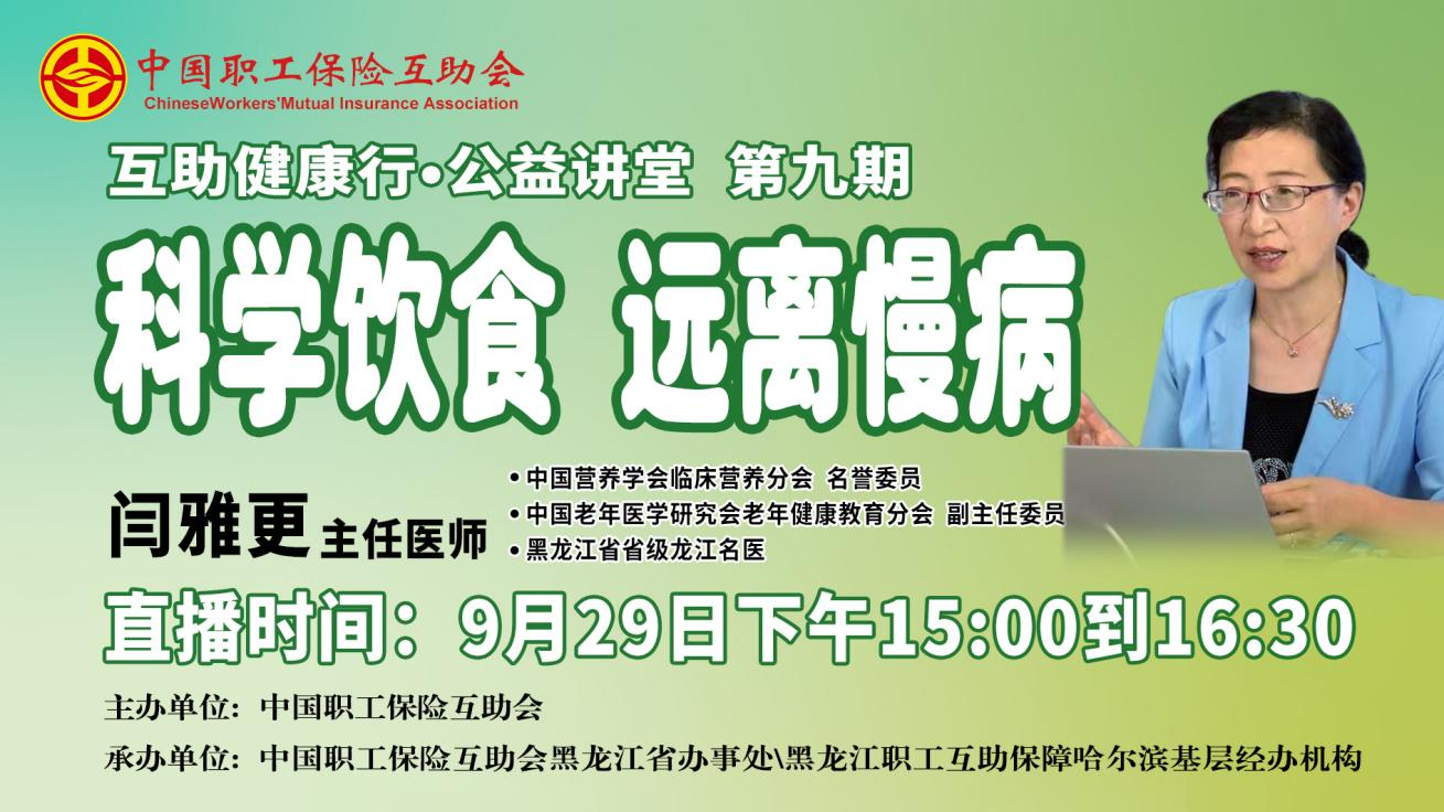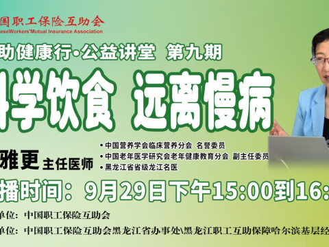 直播回顧|“互助健康行·公益講堂”2025年第九期——科學飲食 遠離慢病9月29日(周一)下午15:00到16:30,由中國職工保險互助會主辦、中互會黑龍江省辦事處和黑龍江職工互助保障哈爾濱基層經辦機構承辦的2025年第九期“互助健康行?公益講堂”——《科學飲食 遠離慢病》,開啟線上直播。