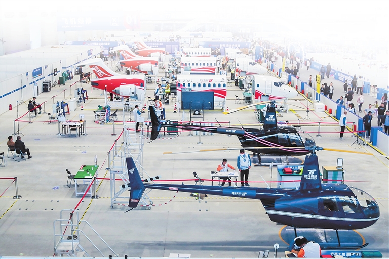 9月20日,參加飛機(jī)維修項(xiàng)目的選手正在同臺(tái)競(jìng)技。