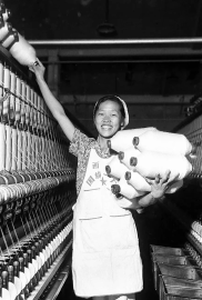進(jìn)廠不到兩年,趙夢桃光榮加入中國共產(chǎn)黨。她第一個(gè)響應(yīng)廠黨委“擴(kuò)臺(tái)擴(kuò)錠”的號(hào)召,看車能力從200錠擴(kuò)大到600錠,生產(chǎn)效率提高了3倍。在她的影響和帶動(dòng)下,“人人當(dāng)先進(jìn),個(gè)個(gè)爭勞模”蔚然成風(fēng)。