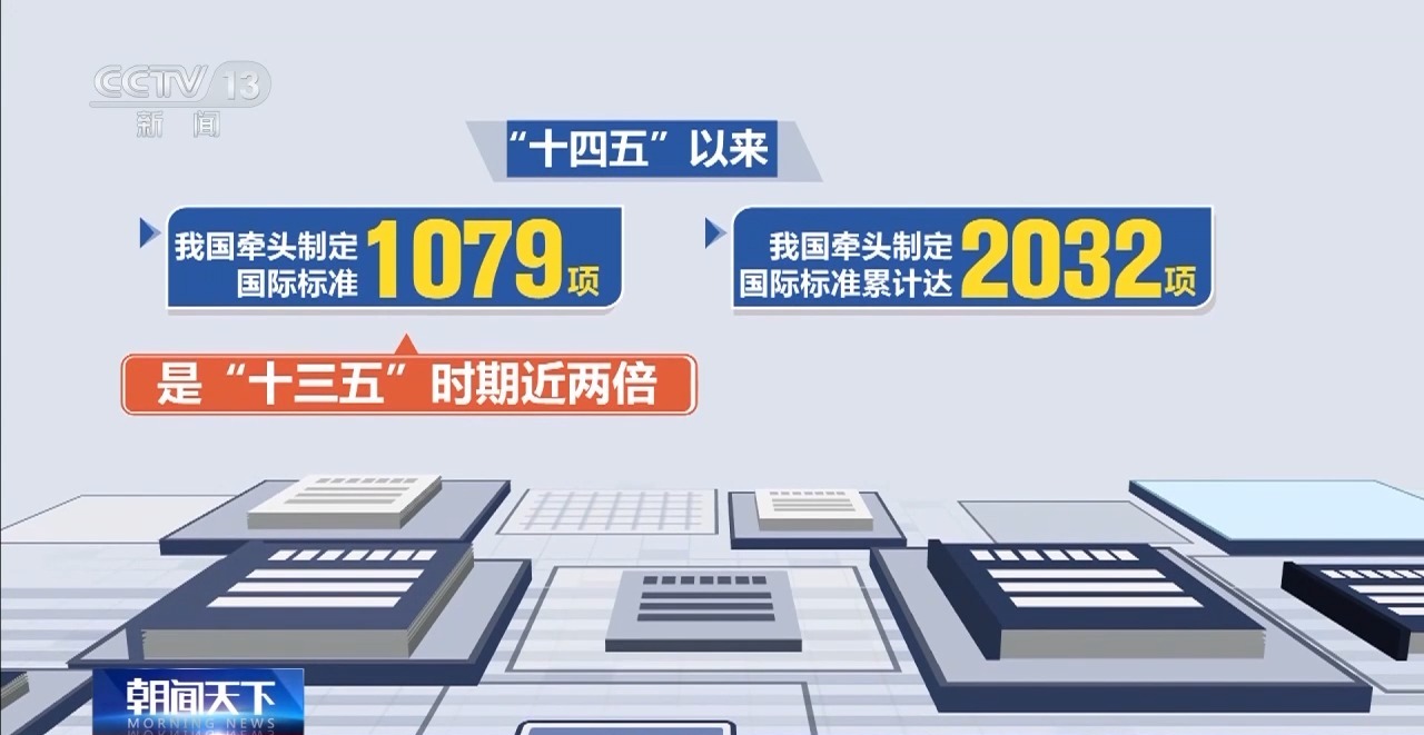 數據顯示,“十四五”以來,我國牽頭制定國際標準1079項,是“十三五”時期的近兩倍。目前,我國牽頭制定的國際標準累計達到2032項。