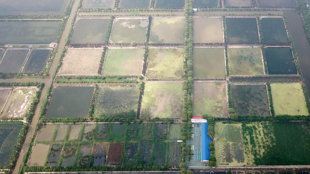 這是大通湖水生植物產業示范園,園內種植了多種水生植物(無人機照片)。新華社記者 陳振海 攝