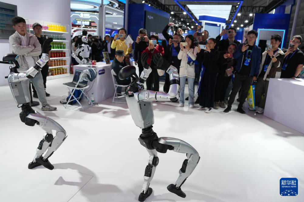 11月6日,觀眾在2025年世界互聯(lián)網(wǎng)大會(huì)“互聯(lián)網(wǎng)之光”博覽會(huì)現(xiàn)場(chǎng)觀摩人形機(jī)器人跳舞。新華社記者 黃宗治 攝