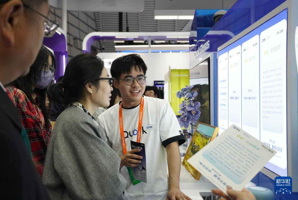 11月6日,觀眾在2025年世界互聯(lián)網(wǎng)大會(huì)“互聯(lián)網(wǎng)之光”博覽會(huì)現(xiàn)場(chǎng)的AI眼鏡展臺(tái)試戴AI眼鏡。新華社記者 劉瓊 攝