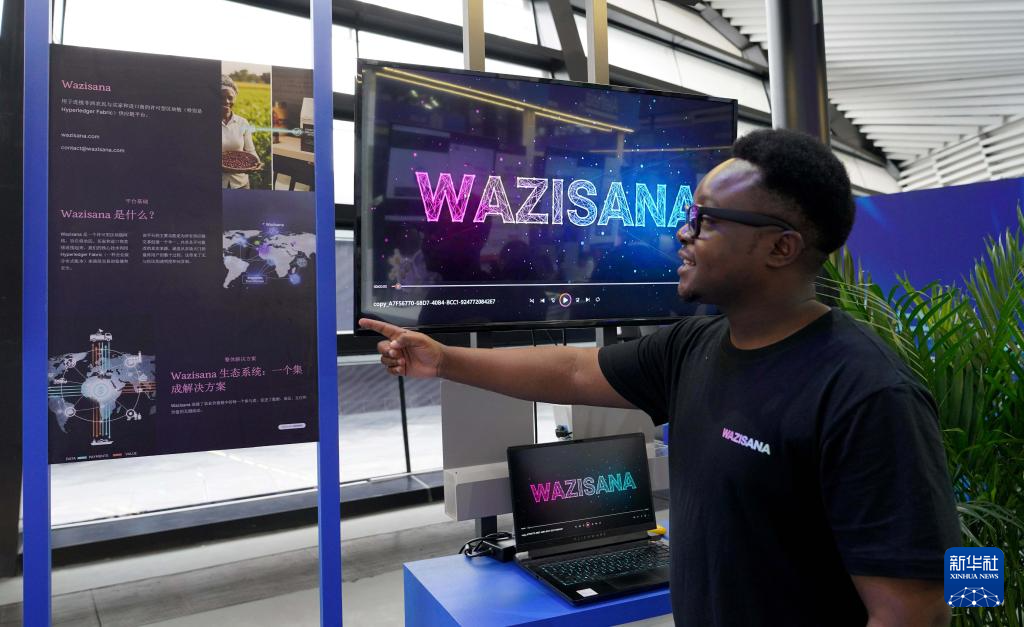 11月6日,來(lái)自津巴布韋的參展商在推介一款自主研發(fā)的供應(yīng)鏈平臺(tái)。該平臺(tái)可用于連接非洲農(nóng)民與買家和進(jìn)口商。他希望將非洲的農(nóng)產(chǎn)品通過(guò)平臺(tái)更多地銷往中國(guó)。新華社記者 趙宇思 攝